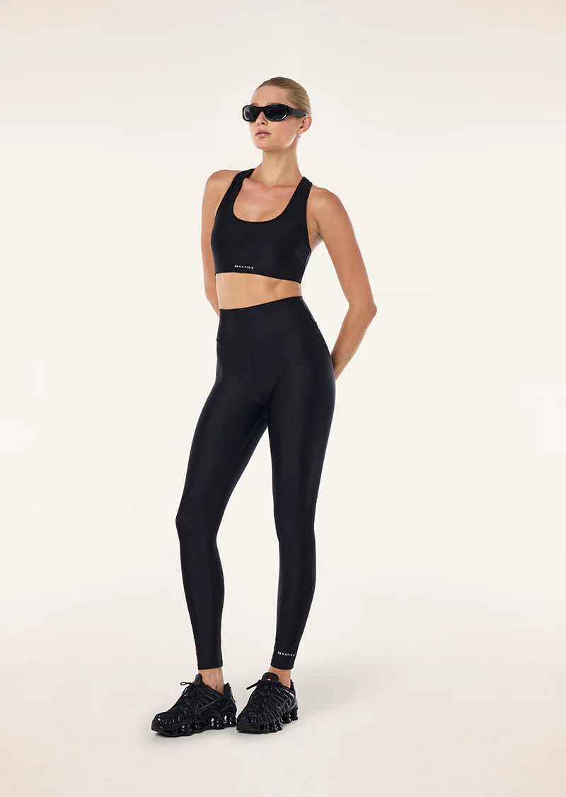 The Fairmont Legging in Black is made from our signature PWR Shine fabrication. This legging is ideal for medium to high intensity activity. An essential to your activewear wardrobe, style this legging with the matching Fairmont Sports Bra to complete the set.