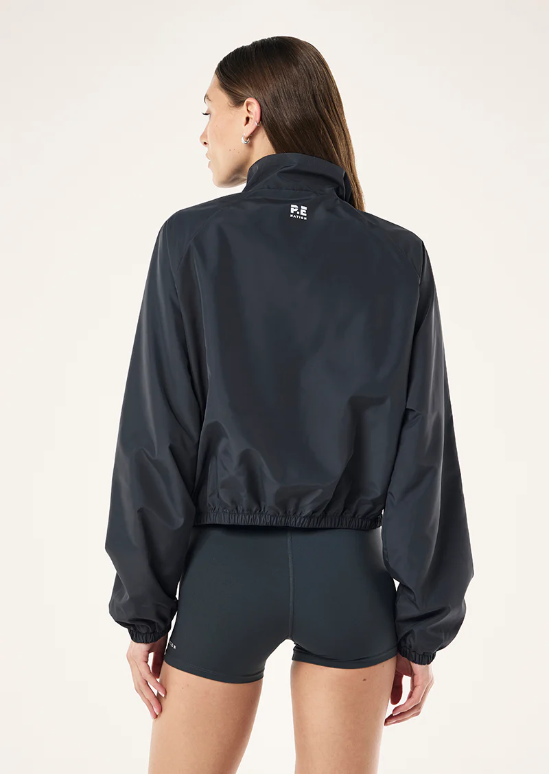 The Shield Jacket in Marine Blue is designed in our spray fabrication and is the ultimate layering piece. This slightly cropped jacket features contrast chevron panelling, hidden chest pocket and concealed snap placket. Wear your jacket over activewear for an elevated athleisure look.