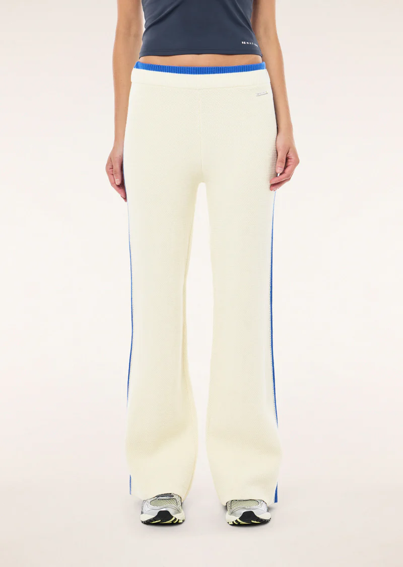 The Odyssey Knit Pant in Whisper White is made from a new cotton waffle knit fabrication designed for effortless everyday wear. Designed with movement and style in mind, it features a contrast side leg panel and branding metal logo patch at hip. Style it with the Odyssey Knit Cardigan for effortless off-duty styling