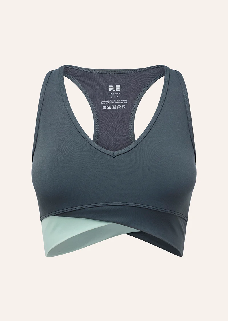 The Wander Sports Bra in Thunder & Dusty Mint is constructed from our most lightweight active fabric, Active Lite. This sports bra features a V Neckline and a racer back. Style this sports bra with the matching Wander bike short or legging for the ultimate athleisure look.
