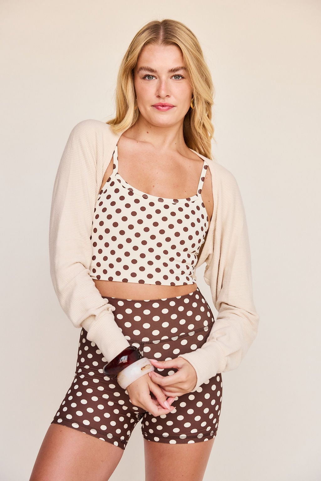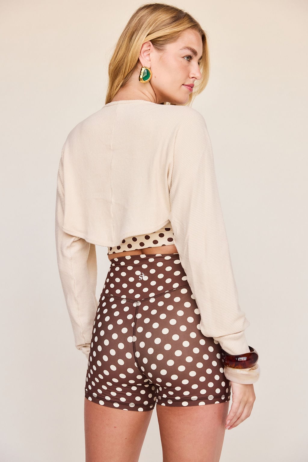 Meet your layering essential. This cropped shrug is designed with long sleeves, fitted cuffs, and a sleek open back for the perfect throw-on finish. Lightweight yet structured, it’s made to move with you—whether you’re warming up, cooling down, or styling it off-duty. Equal parts effortless and functional, it’s the piece you’ll keep reaching for.